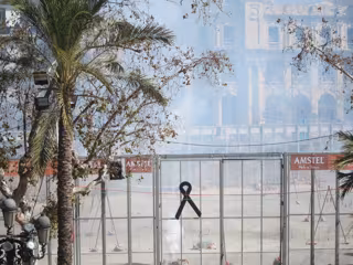 Asimismo, y también en señal de duelo el disparo no ha estado precedido de la música que cada jornada suena minutos antes. Tanto esta medida como la de guardar un minuto de silencio, adoptadas por el consistorio en solidaridad por lo sucedido, se han dado a conocer al público congregado para seguir la 'mascletà' con diversos mensajes, en valenciano y en castellano, por medio de megafonía desde las 13.45 horas.