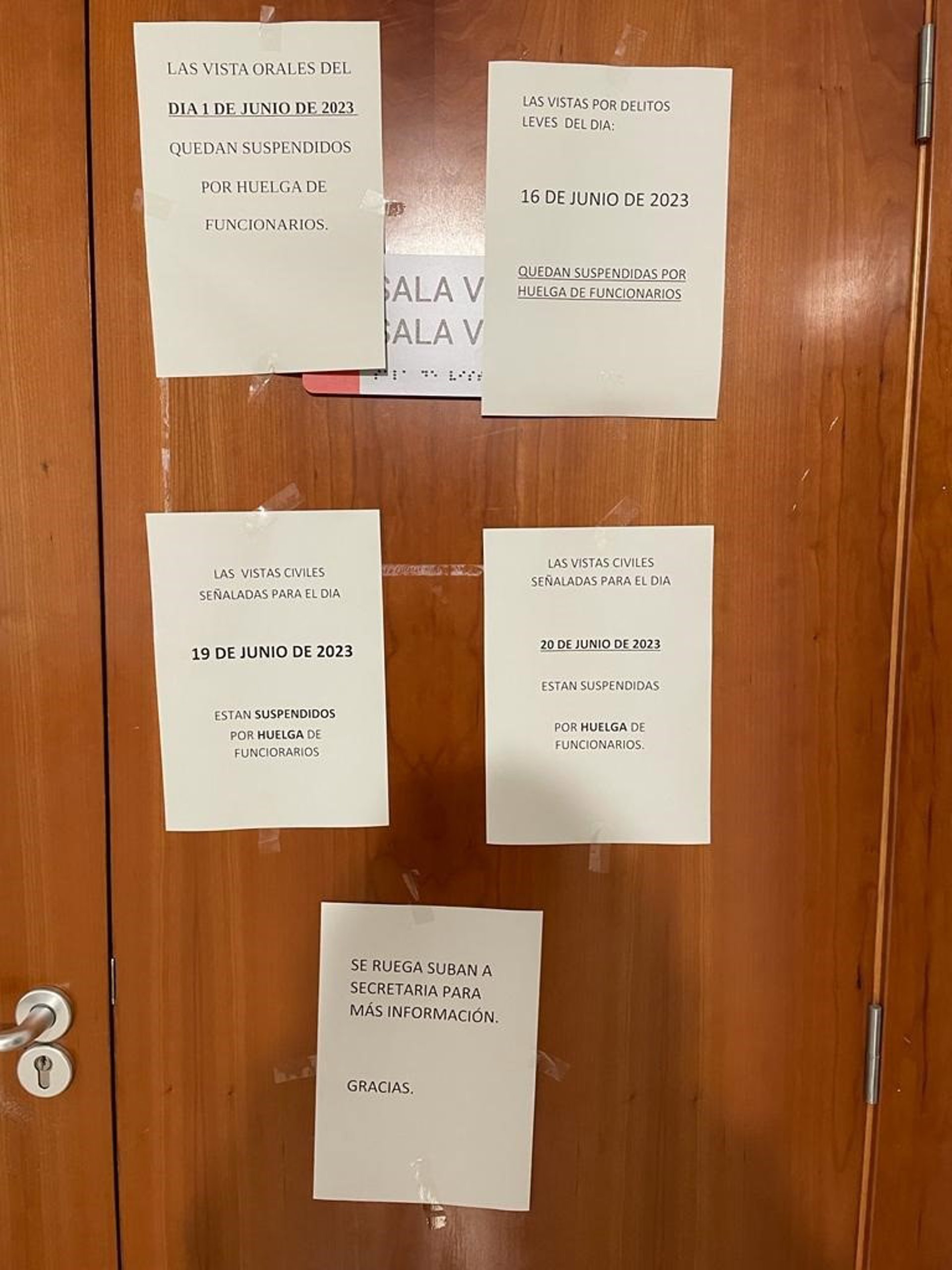 CSIF ha explicado en un comunicado que el colectivo de funcionarios de Justicia está llevando a cabo una huelga indefinida desde el 22 de mayo. Con anterioridad a esa fecha, desarrollaron protestas y paros parciales para reclamar una mejora retributiva y un nuevo catálogo de funciones de cada cuerpo funcionarial con el fin de adaptarlas a la realidad y mejorar el servicio público.
