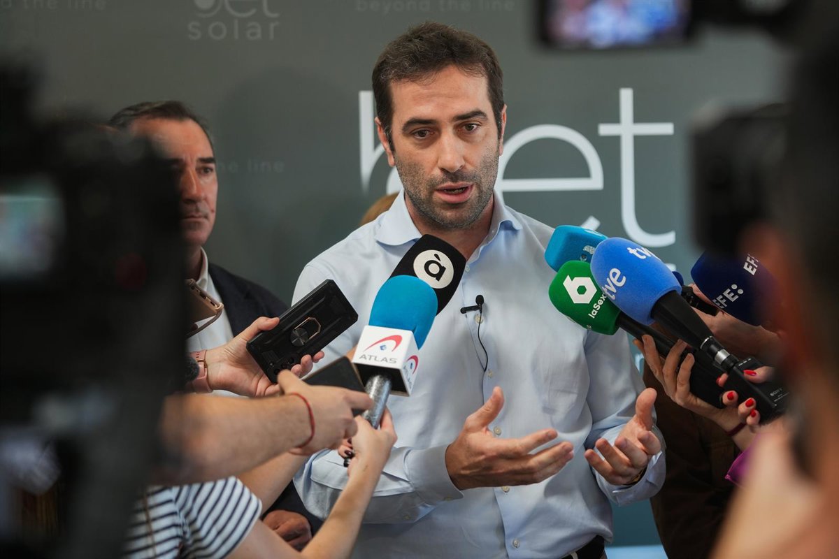 El ministro de Economía, Comercio y Empresa, Carlos Cuerpo, atiende a los medios de comunicación durante su visita a una empresa del polígono de Ribarroja, a 16 de mayo de 2025, en Ribarroja, Valencia, Comunidad Valenciana (España). - Jorge Gil - Europa Press