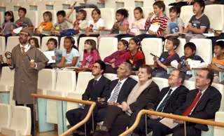 El conseller de Educación, Alejandro Font de Mora, y la intendente del Palau de les Arts, Helga Schmidt, han acompañado este lunes a los niños en la función inaugural de la cuarta edición de este programa didáctico, que se prolongará durante 10 funciones hasta el 15 de abril.