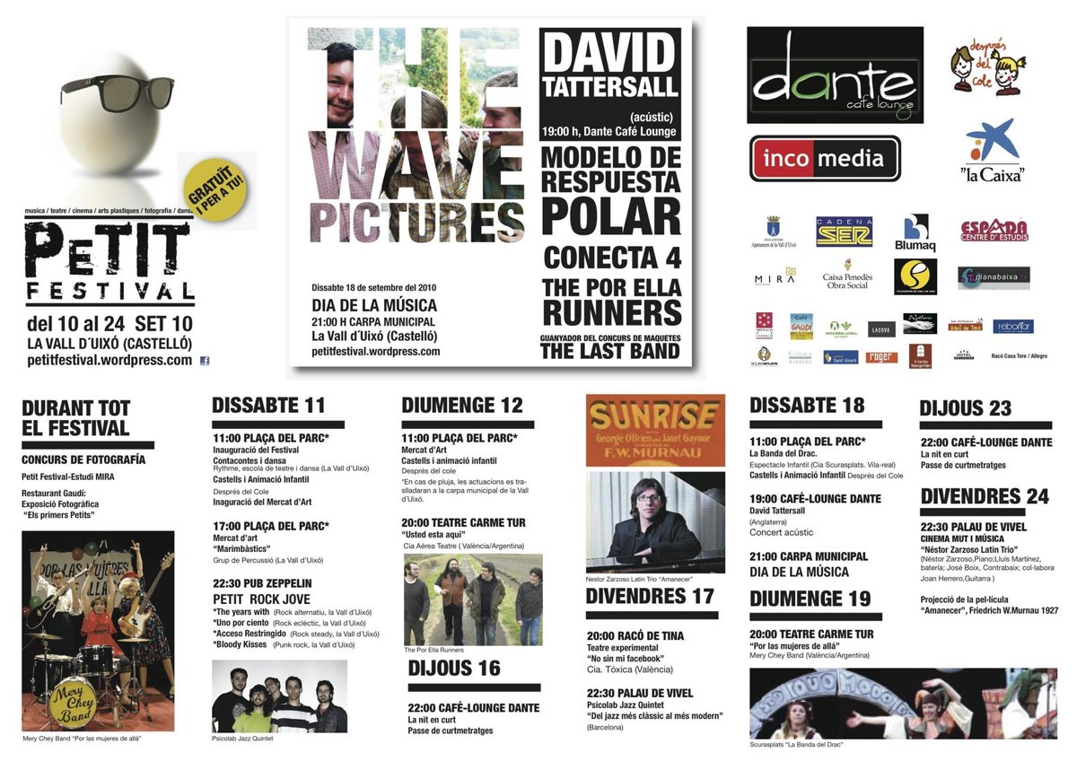 El Petit Festival presenta su cartel al completo en su edición "más ambiciosa", la de 2010, en la que contará con la banda británica The Wave Pictures como gran atractivo y estará integrado por un total de 25 eventos culturales, según ha informado la organización en un comunicado.
