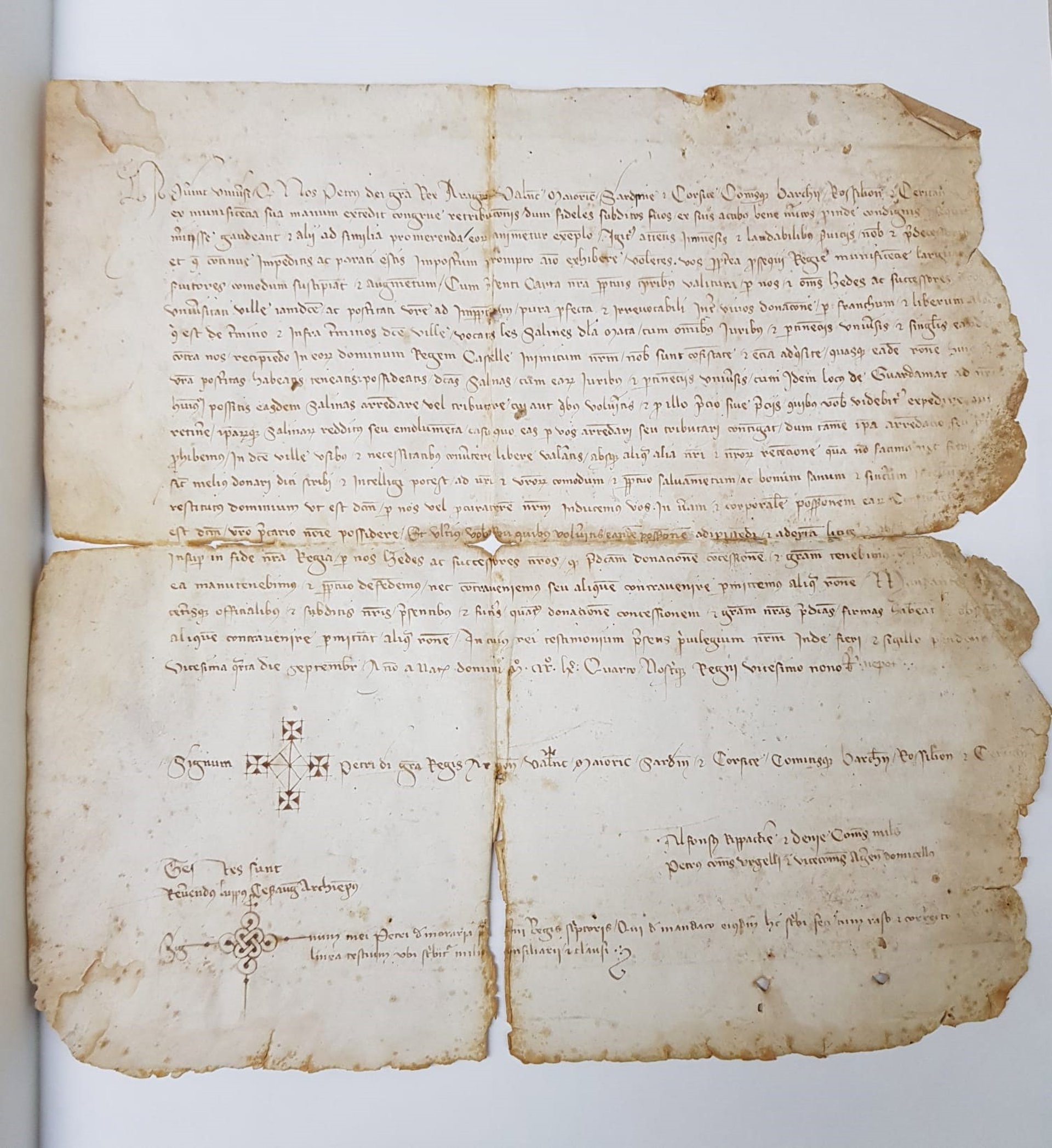 La Conselleria de Cultura ha adquirido para la Biblioteca Pública Fernando de Loazes y Archivo Histórico de Orihuela (Alicante) el pergamino de Pedro IV el Ceremonioso, rey de Aragón, de 24 de septiembre 1364, por el que entrega las salinas de la Mata a Orihuela.