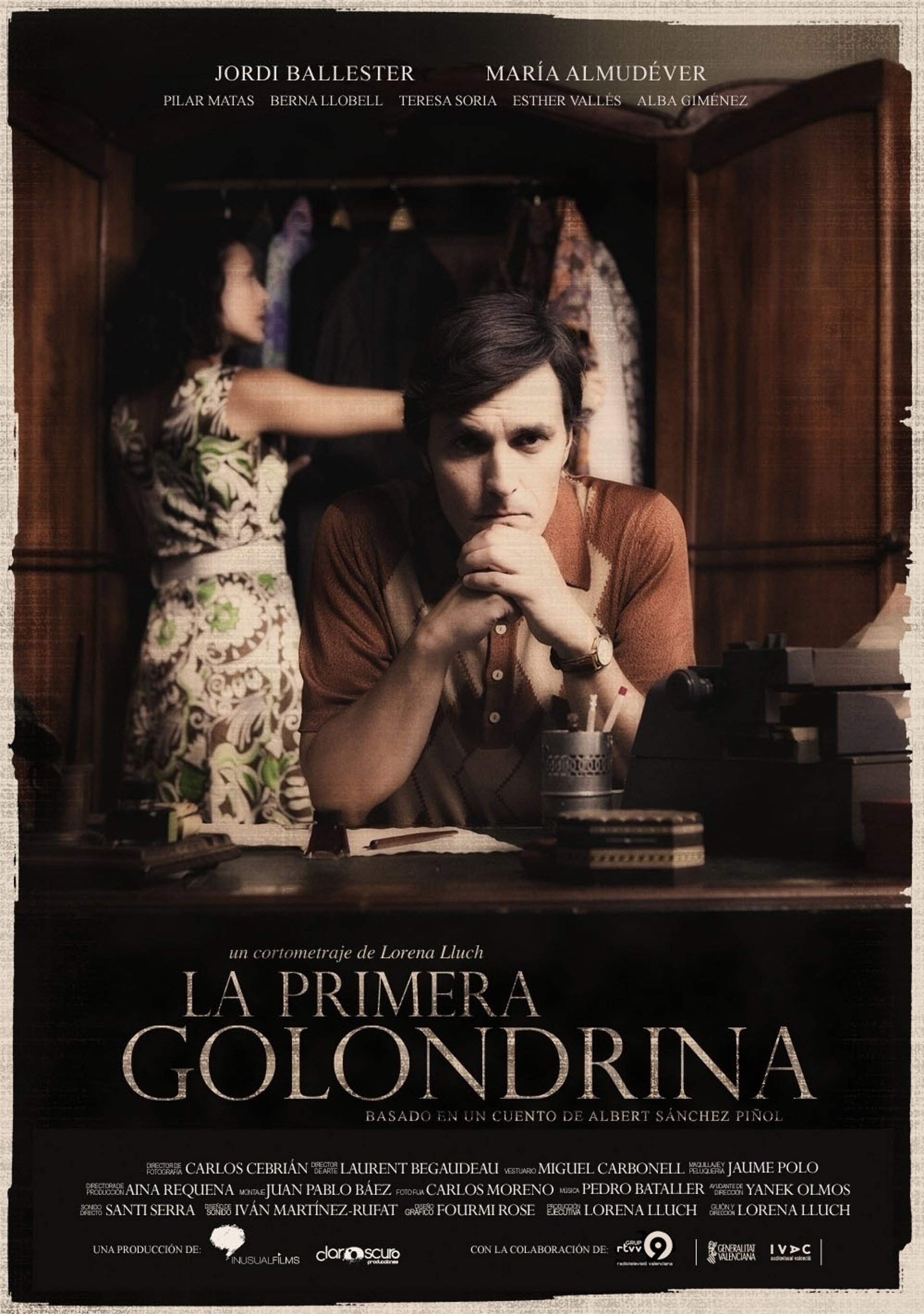 El cortometraje está protagonizado por los "reconocidos actores" valencianos Jordi Ballester y María Almudéver, y en el reparto también figuran Pilar Matas, Esther Vallés, Berna Llobel y Teresa Soria. Rodado íntegramente en Valencia, 'La primera golondrina' está basado en el cuento 'Només digues si encara m'estimes', perteneciente al volumen 'Tretze Trístols Tràngols', del escritor catalán Albert Sánchez Piñol, cuyos derechos de adaptación fueron cedidos a la productora para el rodaje del cortometraje.