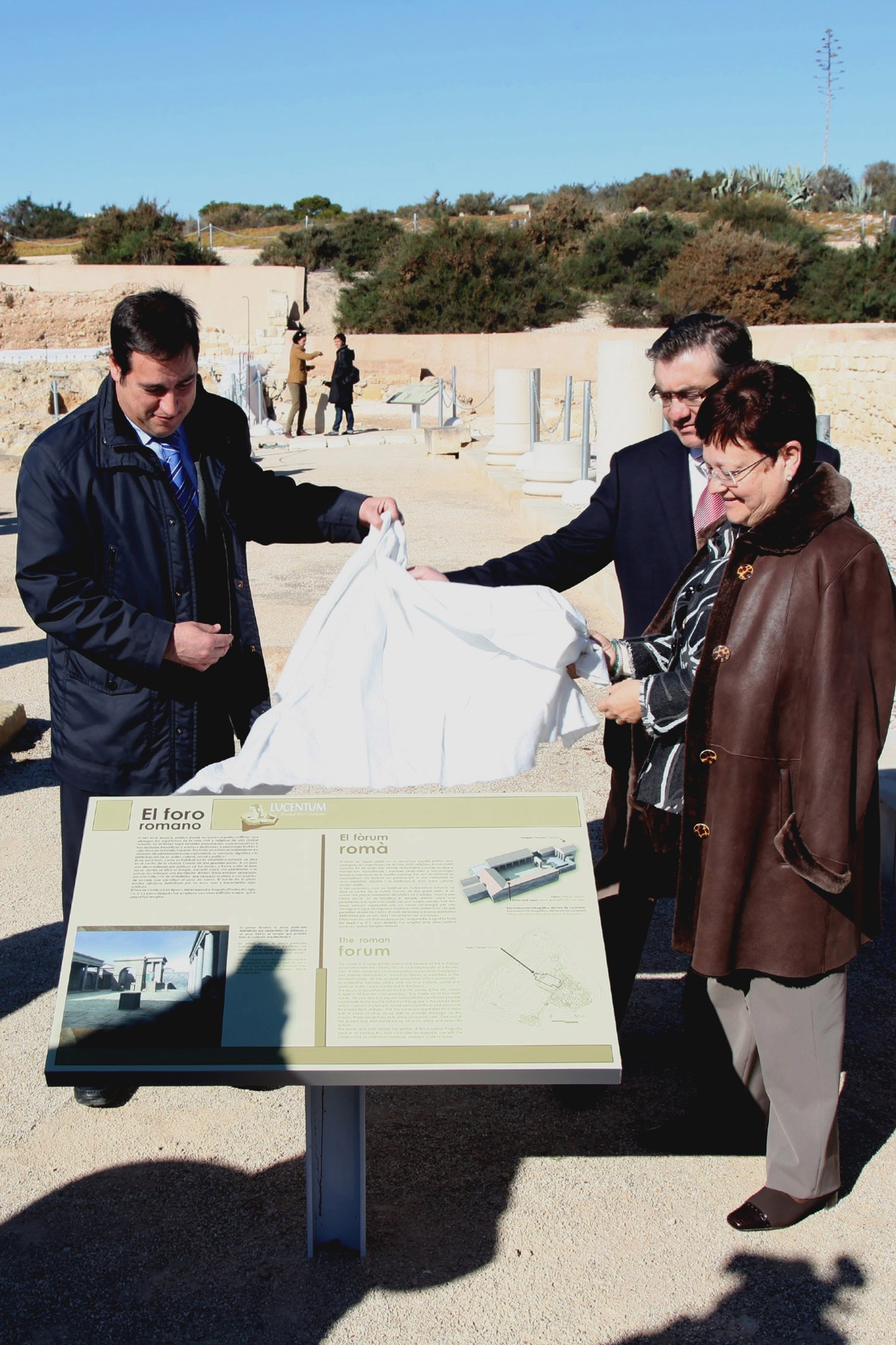 La presidenta de la Diputación de Alicante, Luisa Pastor, y los diputados de Arquitectura, Javier Sendra, y de Cultura, Juan Bautista Roselló, han presentado este lunes el yacimiento los nuevos hallazgos y la ampliación expositiva del área, según ha informado en un comunicado la institución provincial.