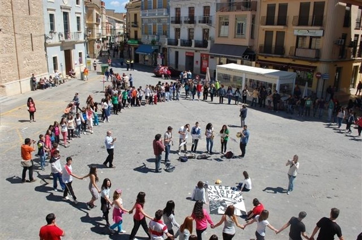 Los alumnos del Instituto de Educación Secundaria (IES) Sanchis Guarner de Silla (Valencia) han realizado este jueves, en la Plaza del Pueblo, un 'flash mob' en homenaje al periodista y poeta valenciano Vicent Andrés Estellés.