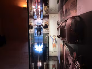 El escaparate doble que preside el interior de una de las dos torres, permite al visitante descubrir piezas raras como un capacete del siglo XIII o XIV y de origen tal vez español que rara vez puede ser visto porque no quedan muchos.