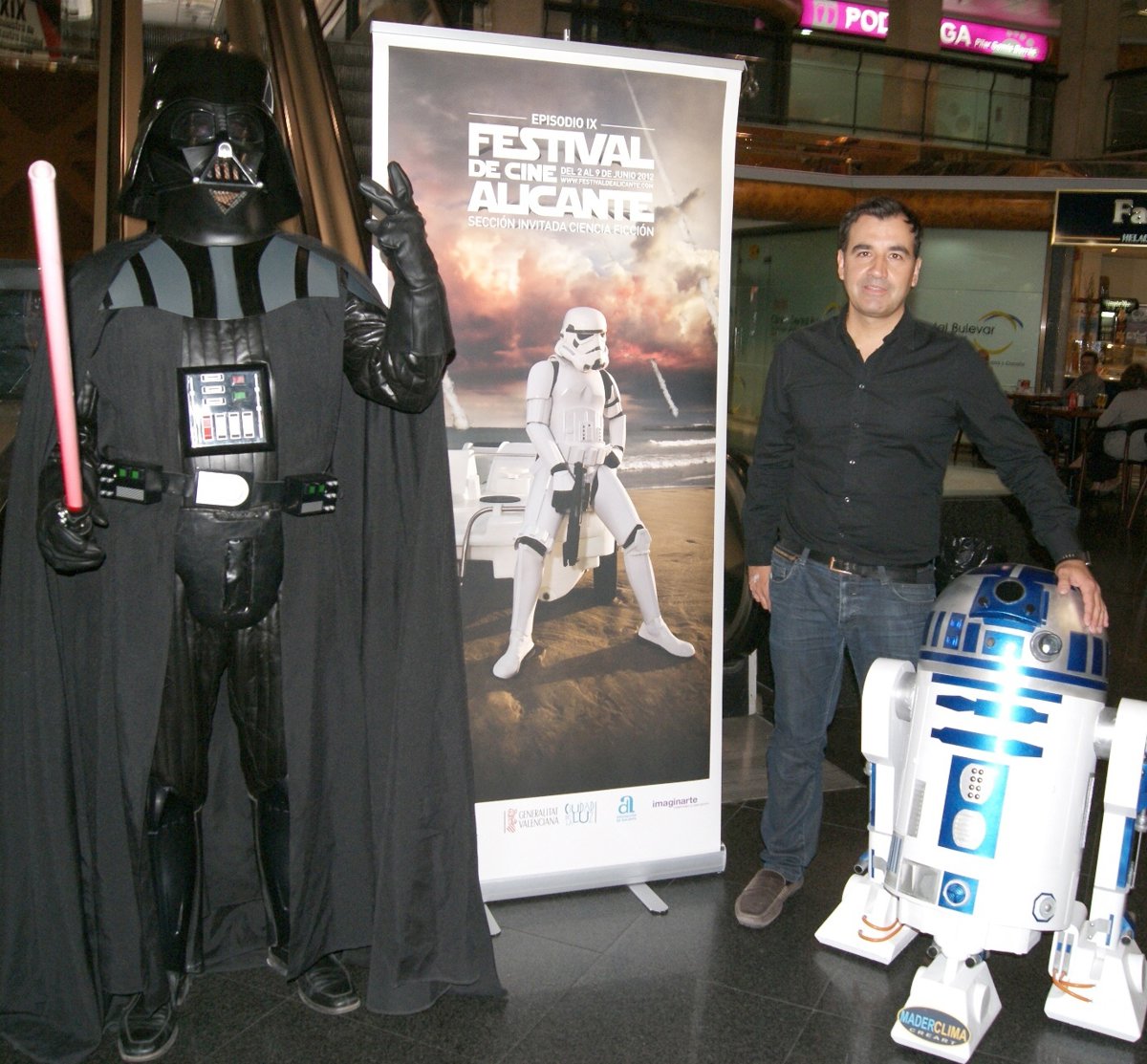 La presentación del nuevo cartel, cuyo diseño está protagonizado por uno de los soldados de asalto de la saga, se ha celebrado este jueves con la presencia también del responsable de la agencia encargada del diseño, Antonio Piñero, y el protagonista del mismo, uno de los 'stormtroopers' del imperio galáctico, además de otros personajes de la saga.