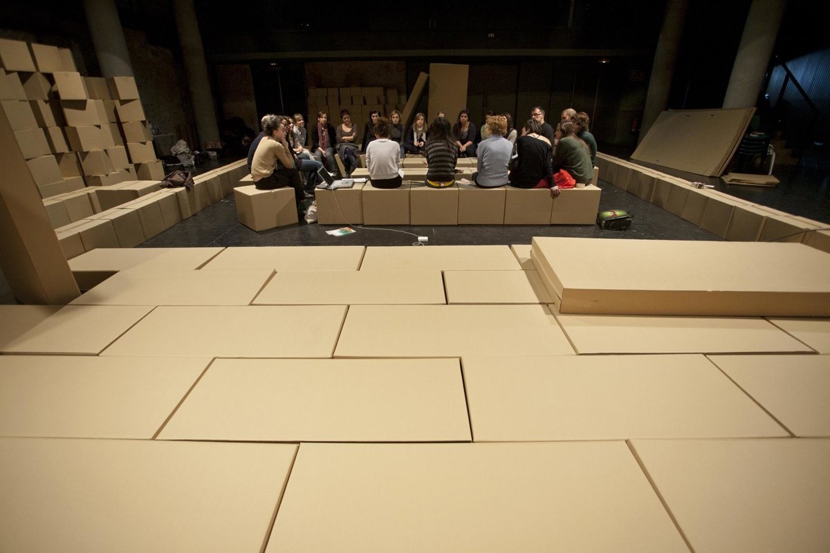 El trabajo desarrollado en el taller ha consistido en crear una coreografía del espectador a partir de la construcción de una escenografía. Los alumnos son un grupo heterogéneo que ha aportado al proyecto dificultad al tiempo que riqueza.