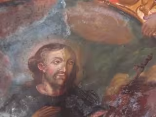 En la intersección de las plementerías de la falsa cúpula se encuentran las imágenes de san Francisco de Asís y santo Domingo de Guzmán iluminados por el ojo divino o trinitario, dicho óvalo está igualmente decorado con motivos de tarjas y rodeado todo él por el cordón franciscano y coronado por el escudo de la Orden Tercera Franciscana.