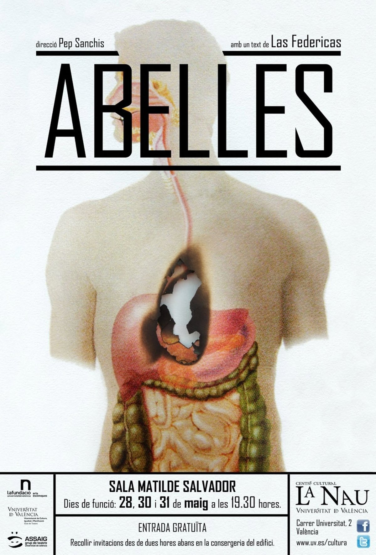 Un comedor social en un subterráneo y un piso de estudiantes son los escenarios donde los ocho personajes recrean la atmósfera actual. El espectáculo combina audiovisuales y música de Tono Berti. Y respecto al título elegido, 'Abelles', es un sinónimo de un mundo que está en extinción. Ellas, las abejas, son las que producen el alimento, polinizando las flores, pero la industrialización, los pesticidas, están acabando con las abejas, en definitiva, con la vida.