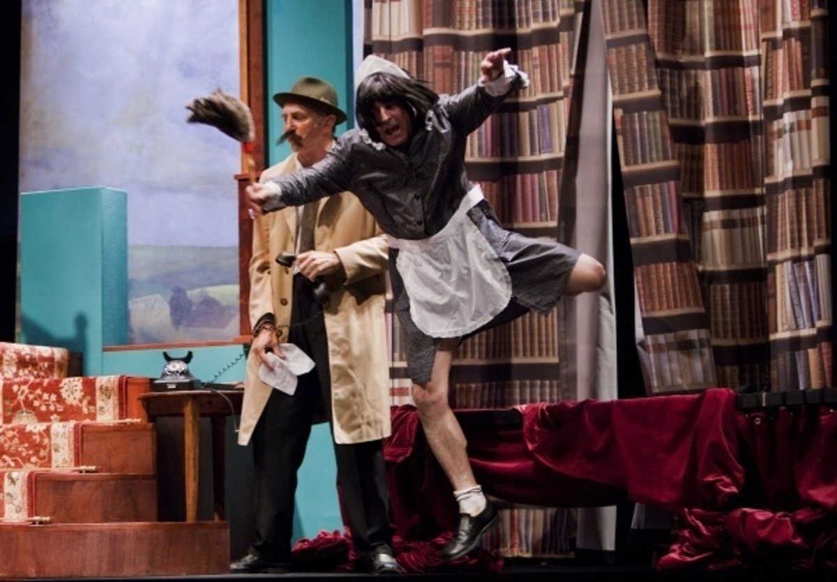 Como no podía ser de otra forma, si algo podía salir mal, ha salido realmente mal o peor, y más de la mitad de la compañía, parte del vestuario y de la escenografía no han llegado a causa de múltiples problemas. Entre dos actores y el regidor tendrán que representar los 12 papeles de la obra, venciendo además los múltiples incidentes y contratiempos que como víctimas de Murphy van sufriendo.