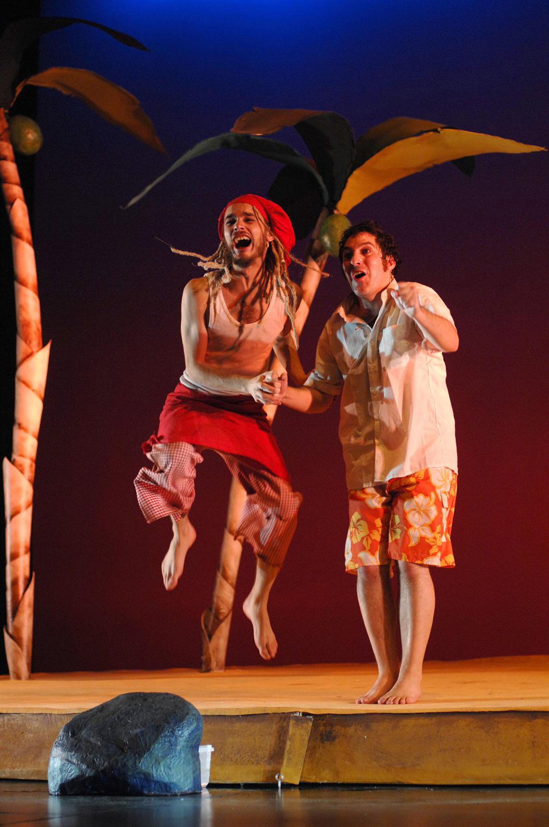 'La isla' es un espectáculo de carácter social en el que un náufrago, cocinero de un barco que lleva un año sobreviviendo en un islote perdido, se enfrenta con un vendedor que llega nadando a la isla. El encuentro entre ambos no será fácil, pero la situación les llevará obligatoriamente a entenderse y ayudarse y, finalmente, a ser amigos.