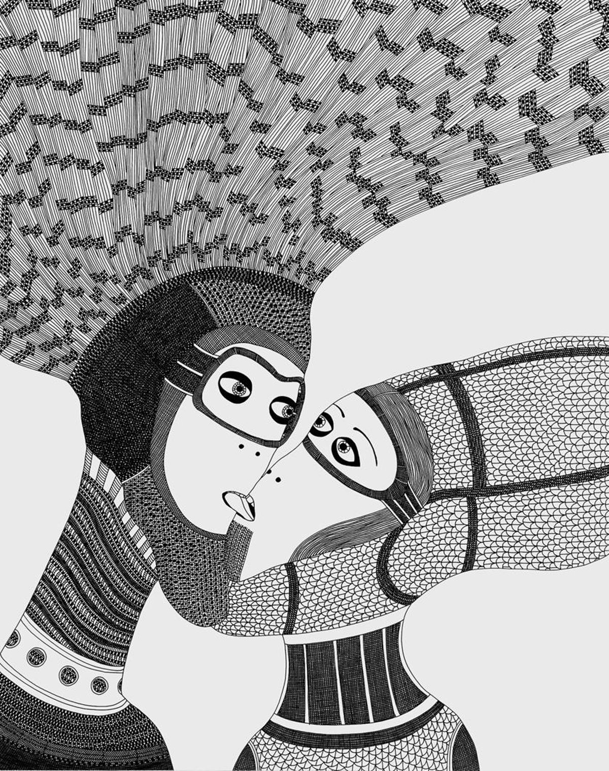 "Los trabajos de Ali y Lazkoz aúnan el dibujo preciosista y meticuloso con el desarrollo de historias y cuentos de vida. Estos dibujos en blanco y negro pueden ser percibidos como una atractiva representación ficcional, sin embargo, los intereses políticos y sociales que conforman las miradas comprometidas de las artistas con su contexto imprimen cierto contenido violento a sus creaciones", han explicado las comisarias de la muestra Johanna Caplliure y Rían Lozano.