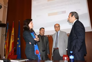 Al acto de presentación del libro han asistido la directora general de Patrimonio Cultura, Marta Alonso, el subdirector de la Cuenca del Júcar en el departamento de Explotación de Acuamed, Felipe Sanz, el catedrático de Arqueología de la Universidad de Valencia, José Luis Jiménez, y el director de Proyectos de Gasoductos de Enagás, Pedro Rubio.