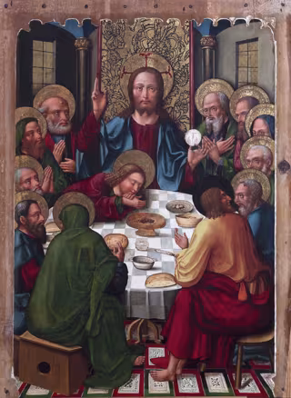 Entre ellas, destaca la tabla de la Santa Cena, restaurada por esta institución y procedente del Museo de la Parroquia de Bocairent (Valencia), una obra atribuida al Maestro de Borbotó en la que el autor inmortaliza el instante de la bendición y refleja las tres edades del hombre: San Juan representa la juventud, Cristo la madurez y San Pedro la vejez.