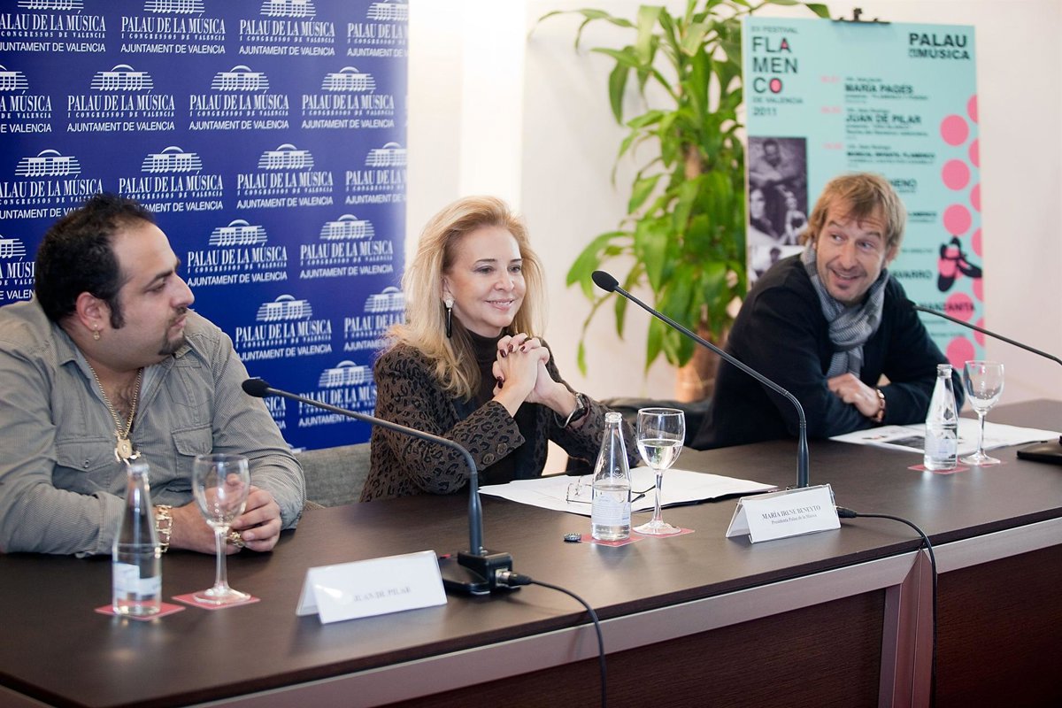 La presidenta del Palau de la Música, Mayrén Beneyto, ha presentado este martes el programa del certamen junto al director artístico del Festival, Pedro Sendra, y del guitarrista Juan de Pilar, que protagonizará la 'Noche del Flamenco Valenciano' con la presentación de su primer disco en solitario 'Oro Blanco'.