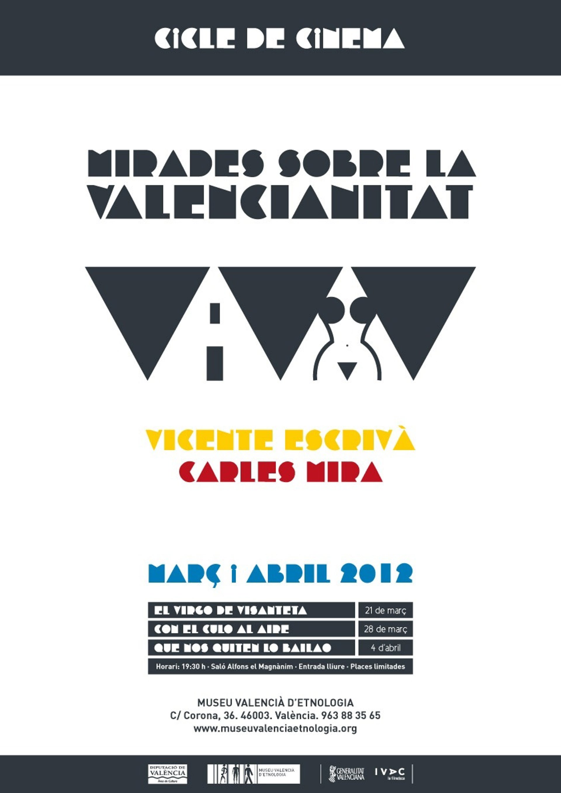 En 'Tres mirades sobre la valencianitat' el Museu Valencià d'Etnologia ha reunido tres películas de los directores Vicente Escrivà y Carles Mira 'El virgo de Vicenteta' (1979. Vicente Escrivà); 'Con el culo al aire' (1980. Carles Mira), y 'Que nos quiten lo bailao' (1983. Carles Mira).