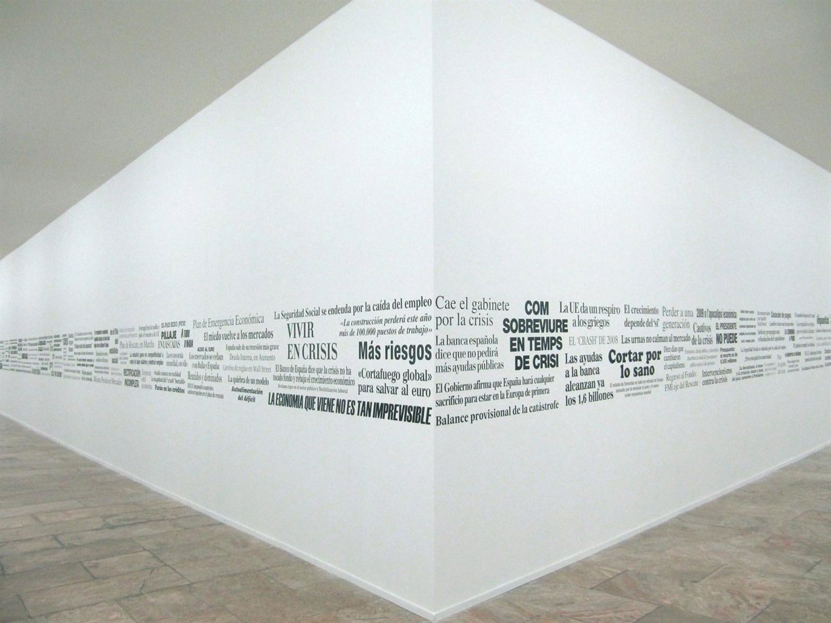La instalación, que se podrá contemplar hasta el 16 de septiembre, reúne casi dos centenares de titulares de prensa que informaron sobre procesos clave en diferentes crisis económicas sucedidas en varios países durante los últimos veinte años. Para la elaboración del proyecto se ha tomado como premisa la investigación en fuentes primarias a modo de estrategia, para posteriormente plantear mediante dicha instalación de qué forma los medios de comunicación transmiten las noticias en situación de crisis económica.