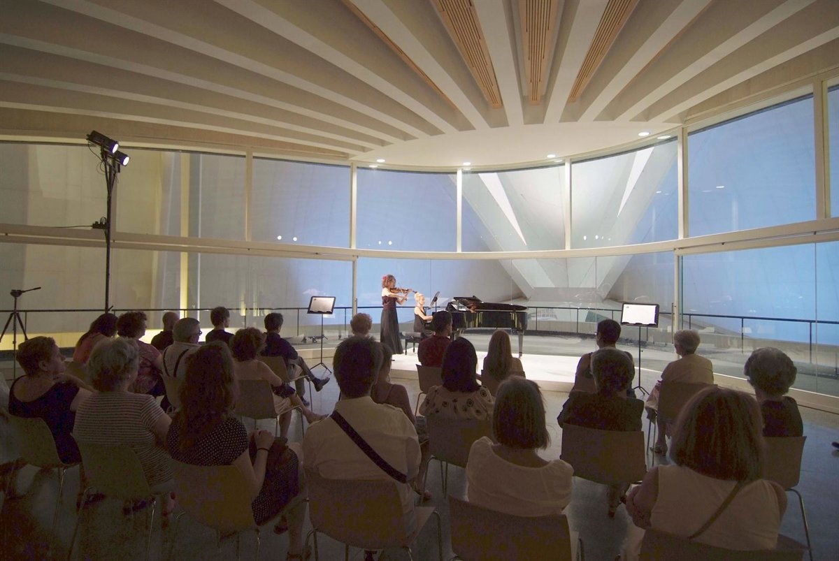 A partir de las 20.30 horas, el edificio de Santiago Calatrava abre sus terrazas y balcones para todo aquel que quiera conocer y disfrutar de los espacios al aire libre del enclave operístico amenizados por las actuaciones de grupos de músicos de cámara de la Orquestra de la Comunitat Valenciana y de Berklee College of Music, que se sucederán desde las 21.30 horas hasta la 1.00 de la madrugada.