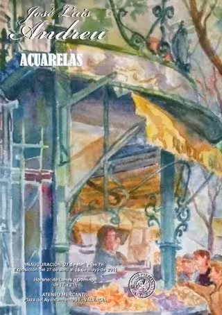 El pintor madrileño José Luis Andreu inaugura este miércoles, en la sala de exposiciones del Ateneo Mercantil de Valencia, a las 19.00 horas, su última serie de acuarelas sobre paisajes y escenas costumbristas. En total, una treintena de obras en las que trata de reflejar imágenes cotidianas, que incluyen algunas con la ciudad de Valencia como telón de fondo, ha informado el organismo cultural en un comunicado.