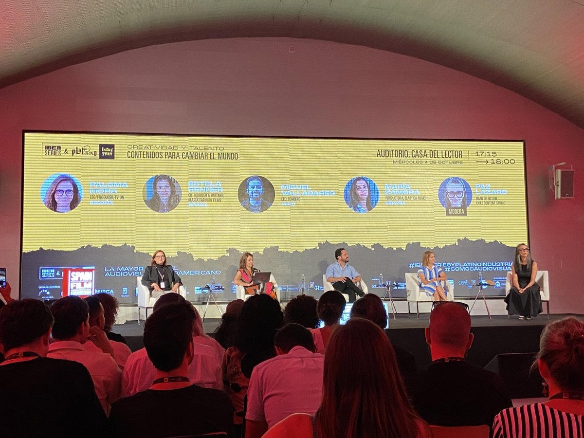 En la segunda jornada de Iberseries, las productoras valencianas Paloma Mora, de TV ON Producciones, y María Zamora, de Elástica Films, han participado en la conferencia 'Contenidos para cambiar el mundo', junto con otros directores y creadores que están detrás de las películas y series más recientes.