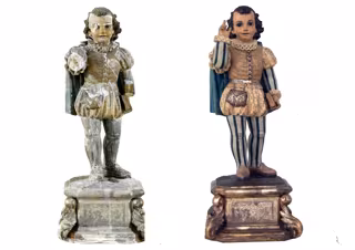 La existencia de esculturas que representan a San Vicente Ferrer en su infancia se debe al hecho, según plasman sus biógrafos, de que a los nueve años el santo ya realizó un milagro al sanar unas llagas a un niño de cinco.