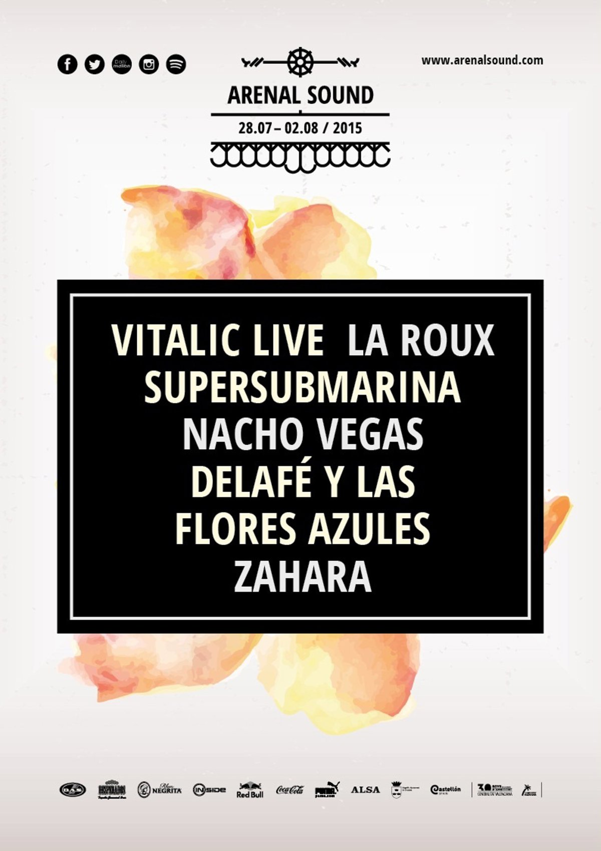 El Arenal Sound 2015 ha confirmado a Vitalic (Live), La Roux, Supersubmarina, Nacho Vegas, Delafé y Las Flores Azules y Zahara como artistas que estarán presentes en la sexta edición del festival, que se celebrará en Burriana (Castellón) del 28 de julio al 2 de agosto.