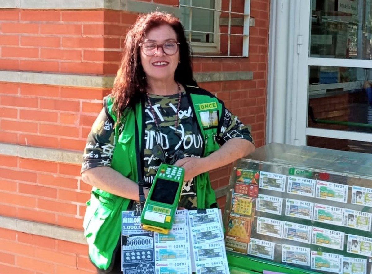 La vendedoraM Elvira Talens Salaha llevado la suerte aTavernes de Valldignacon 10 cupones premiados con 35.000 euros cada uno. Elvira trabaja en ONCE desde hace siete meses, tiene discapacidad física y anteriormente trabajó en una distribuidora de electricidad.