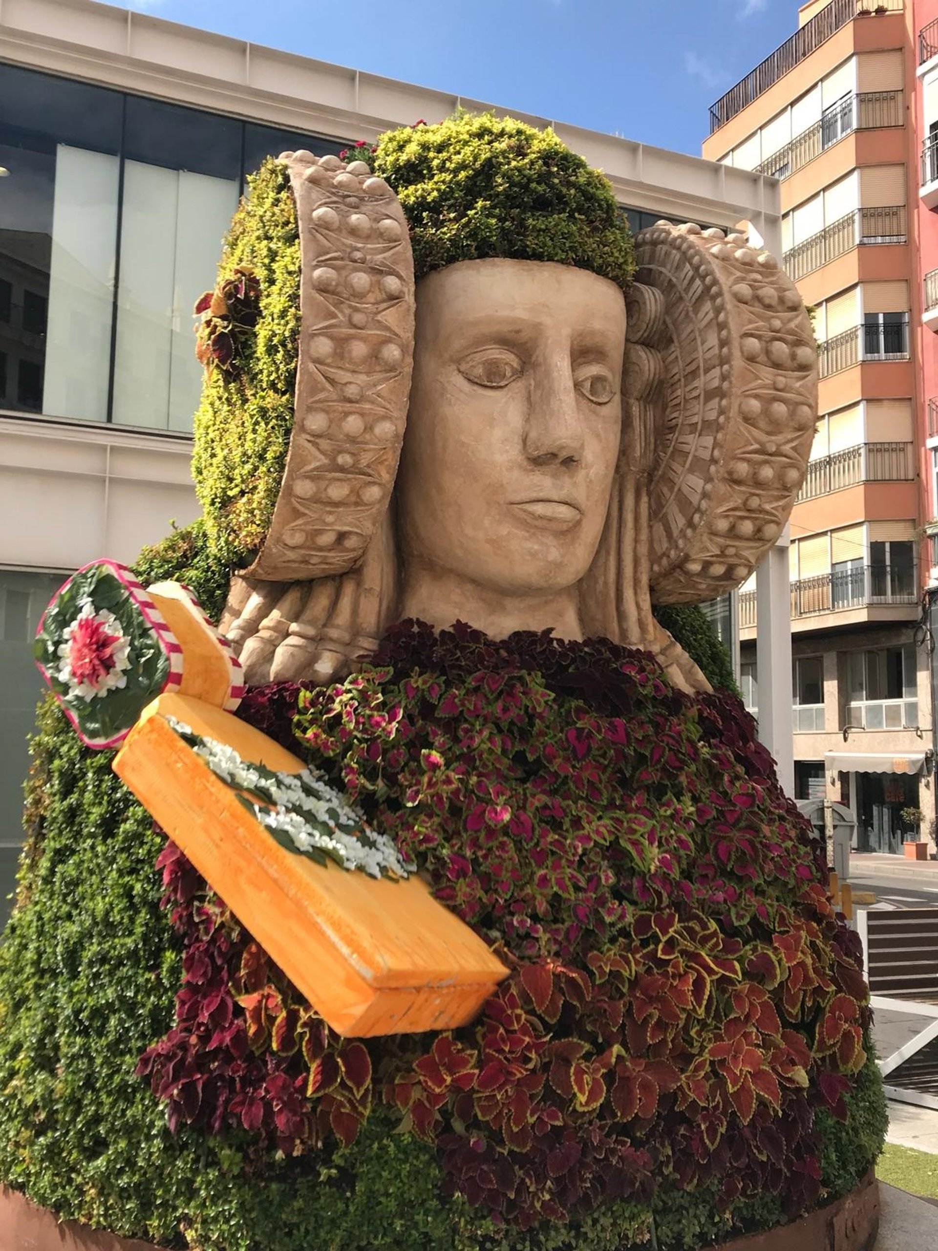 Según ha informado el Ayuntamiento en un comunicado, el busto que representa al icono de la cultura íbera ha sido "customizado" con motivo de la celebración de las jornadas que se desarrollan a lo largo de hoy.