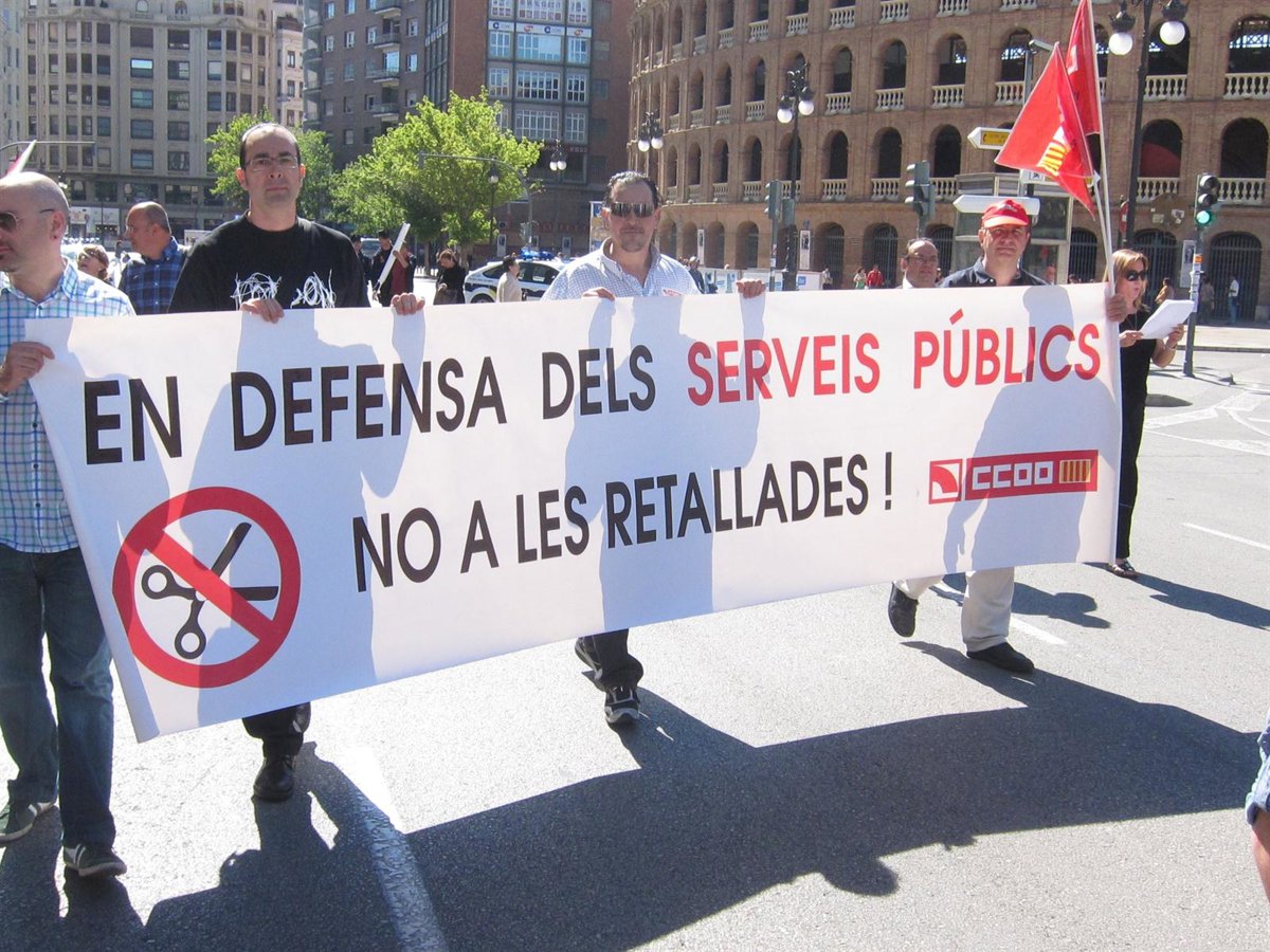 La protesta, organizada por la Plataforma Sindical Valenciana que reúne a los principales sindicatos de la función pública, ha comenzado a las 10.30 horas frente a la Delegación del Gobierno de Valencia, en la calle Colón, y, a continuación, ha discurrido por varias calles del centro de la ciudad. Paralelamente se han realizado concentraciones en las puertas de algunos centros de trabajo.