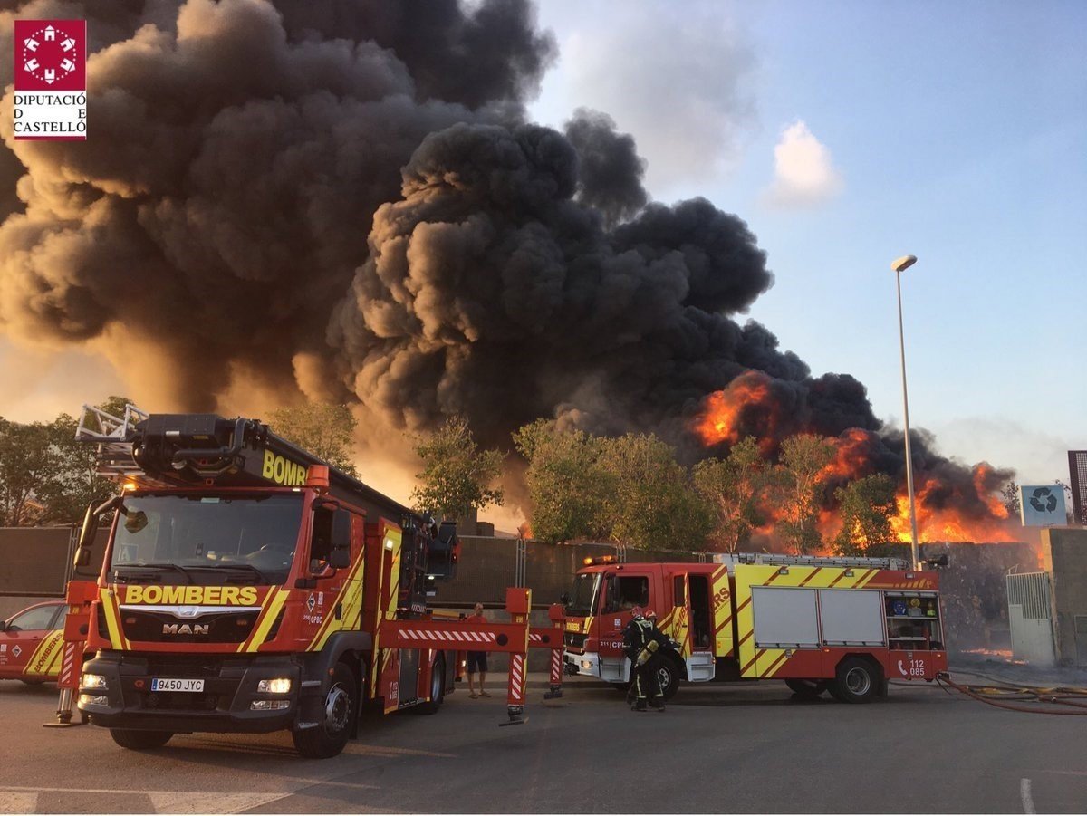 Un incendio se ha declarado este miércoles por la tarde en el una superficie de almacenaje exterior de una empresa de reciclaje en el polígono El Colador de Onda (Castellón).