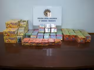 Agentes de la Policía Local de Valencia ha decomisado este miércoles 11.048 unidades de petardos con un peso de 8,443 kilos de petardos en dos establecimientos por exceder la cantidad autorizada de almacenamiento, según ha informado en un comunicado.