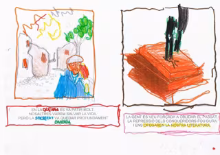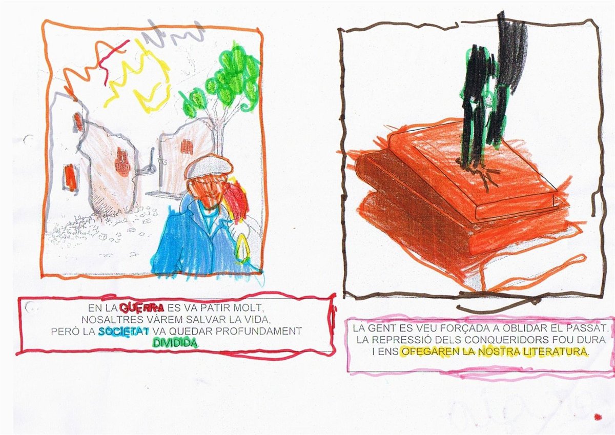 En un comunicado, el colectivo asegura que los alumnos del centro alcoyano "reciben deberes consistentes en colorear viñetas con claro contenido violento, en las que se les habla de 'caminar hacia un país con más identidad' y de 'luchar por nuestra lengua'. "Todo ello --en opinión de esta entidad-- entre referencias a los ficticios Países Catalanes e imágenes de libros apuñalados".