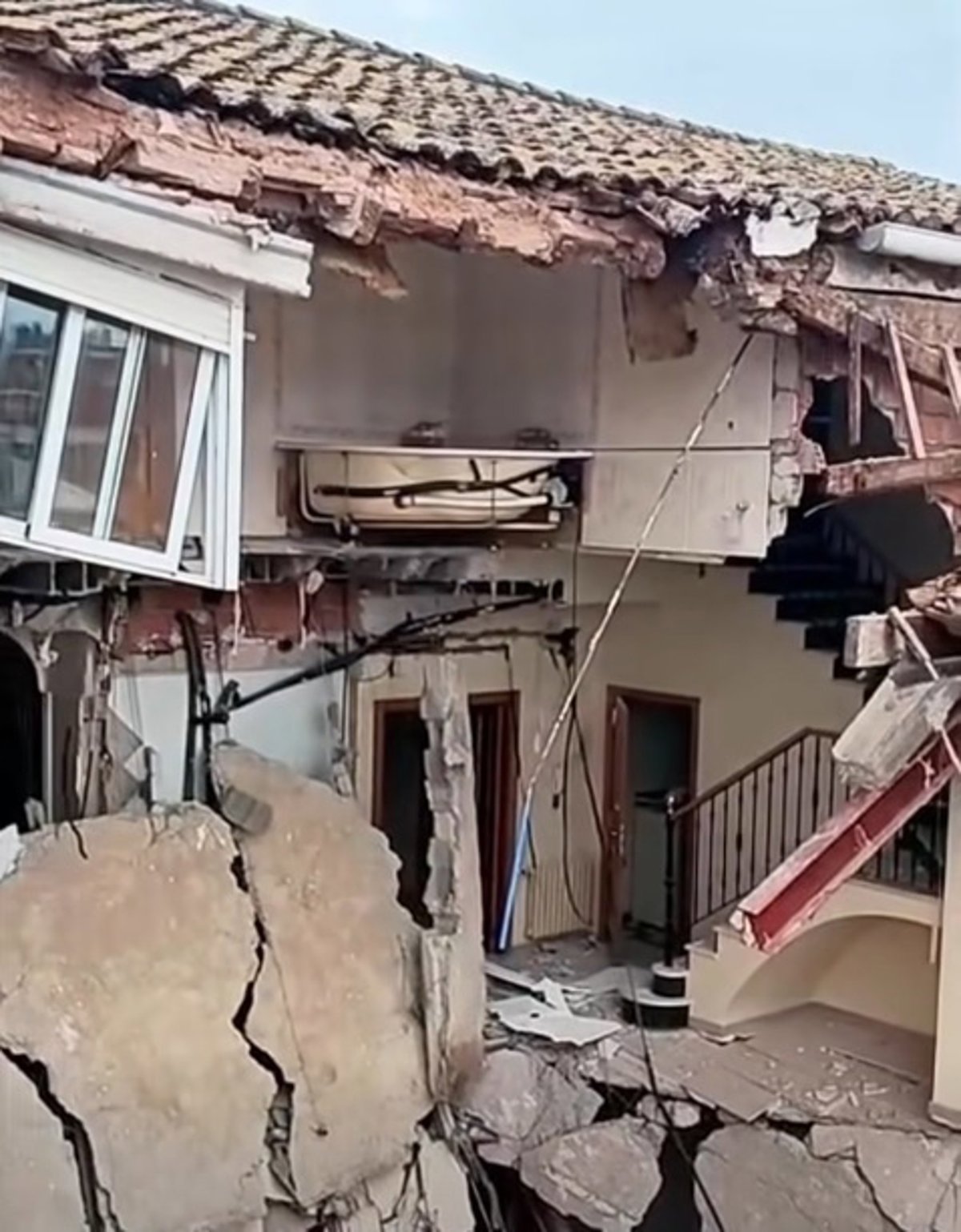 Los bomberos fueron requeridos por el colapso parcial de un edificio compuesto por dos volúmenes: un cuerpo principal de planta baja más dos alturas y otro adosado de planta baja más un piso.