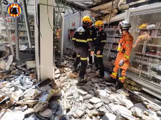Debido a la gran cantidad de escombros, se ha activado también la unidad canina de la ONG IAE. Pese a que el supermercado había sido desalojado, los rescatadores de la UREC junto con perros de la unidad canina han revisado la zona para acabar de descartar que personas pudieran estar atrapadas bajo los escombros.