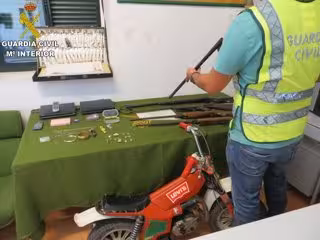 En el marco de esta actuación, la Guardia Civil practicó un registro en el domicilio de uno de los detenidos, ubicado en Buñol, donde los agentes hallaron numerosos objetos de procedencia ilícita, entre los que se encontraban joyas, relojes, teléfonos móviles, dos escopetas antiguas sin documentación, tres carabinas de aire comprimido, una bascula de precisión y una minimoto, entre otros.