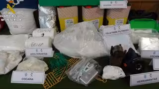Entre los efectos intervenidos, figuran 17,5 kilos de cocaína, otros 10 de sustancias de corte, 35 litros de sustancias químicas (precursores), 63.000 euros en metálico, 3 vehículos, herramientas, maquina de contar dinero y útiles pertenecientes al laboratorio de extracción secundaria de cocaína.