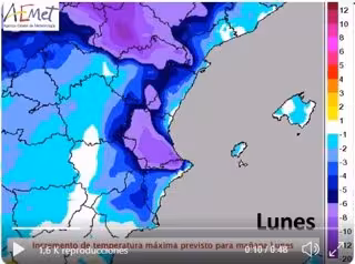 Las temperaturas mínimas en la región experimentarán pocos cambios, mientras las máximas irán en descenso, de forma notable en la provincia de Valencia. El descenso térmico se mantendrá hasta el miércoles y el jueves comenzarán a ascender las temperaturas.