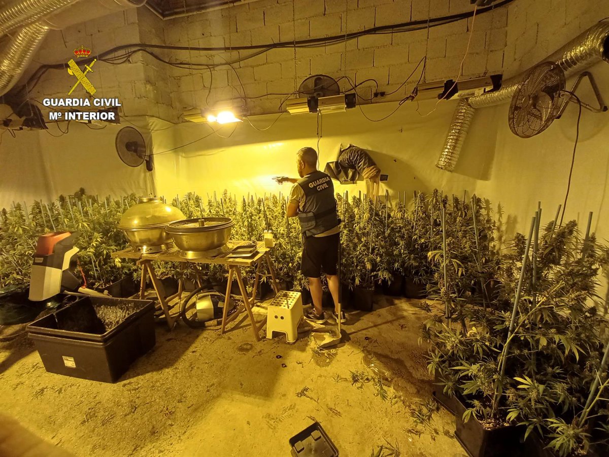 Una vez judicializadas las actuaciones, se procedió a la entrada y registro del inmueble, donde se aprehendieron 18 kilogramos de cogollos secos dispuestos ya para su distribución, 517 plantas de cannabis sativa en estado avanzado de floración, maceteros preparados para una nueva plantación, así como numerosa maquinaria para la elaboración de este tipo de sustancias.