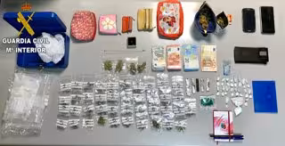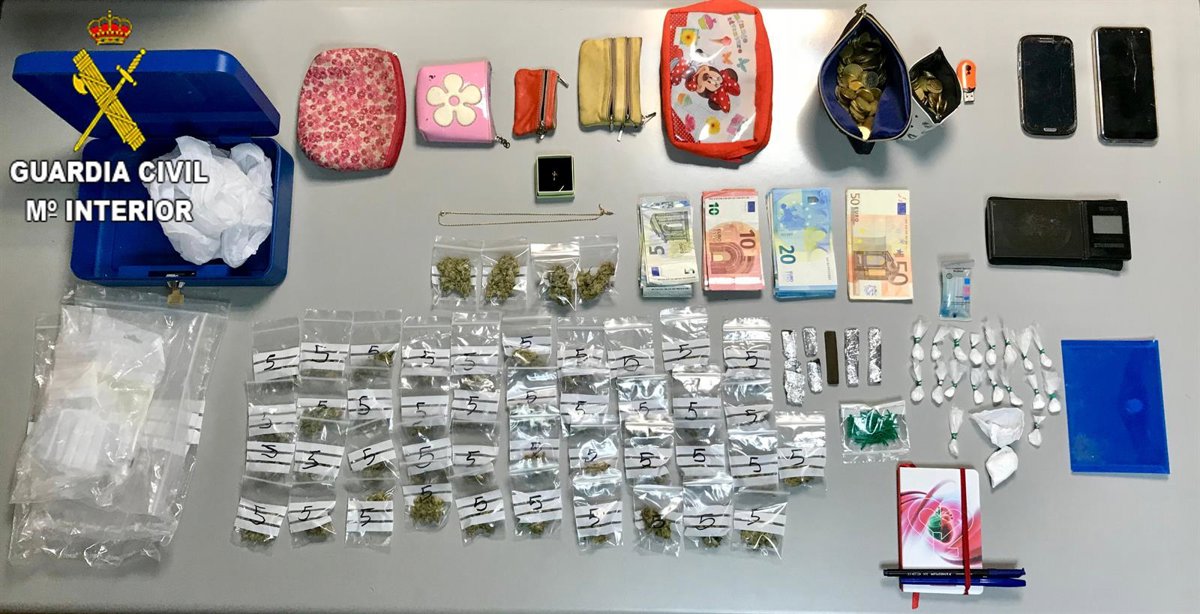El Equipo ROCA de la Guardia Civil de Paiporta (Valencia) ha desmantelado un punto de venta de cocaína y marihuana al menudeo cerca de una escuela infantil de la localidad valenciana de Albal. La mujer y el hombre detenidos por tráfico de drogas tenían 19 dosis de cocaína, seis trozos de hachís y 45 bolsitas de marihuana, informa el instituto armado en un comunicado.