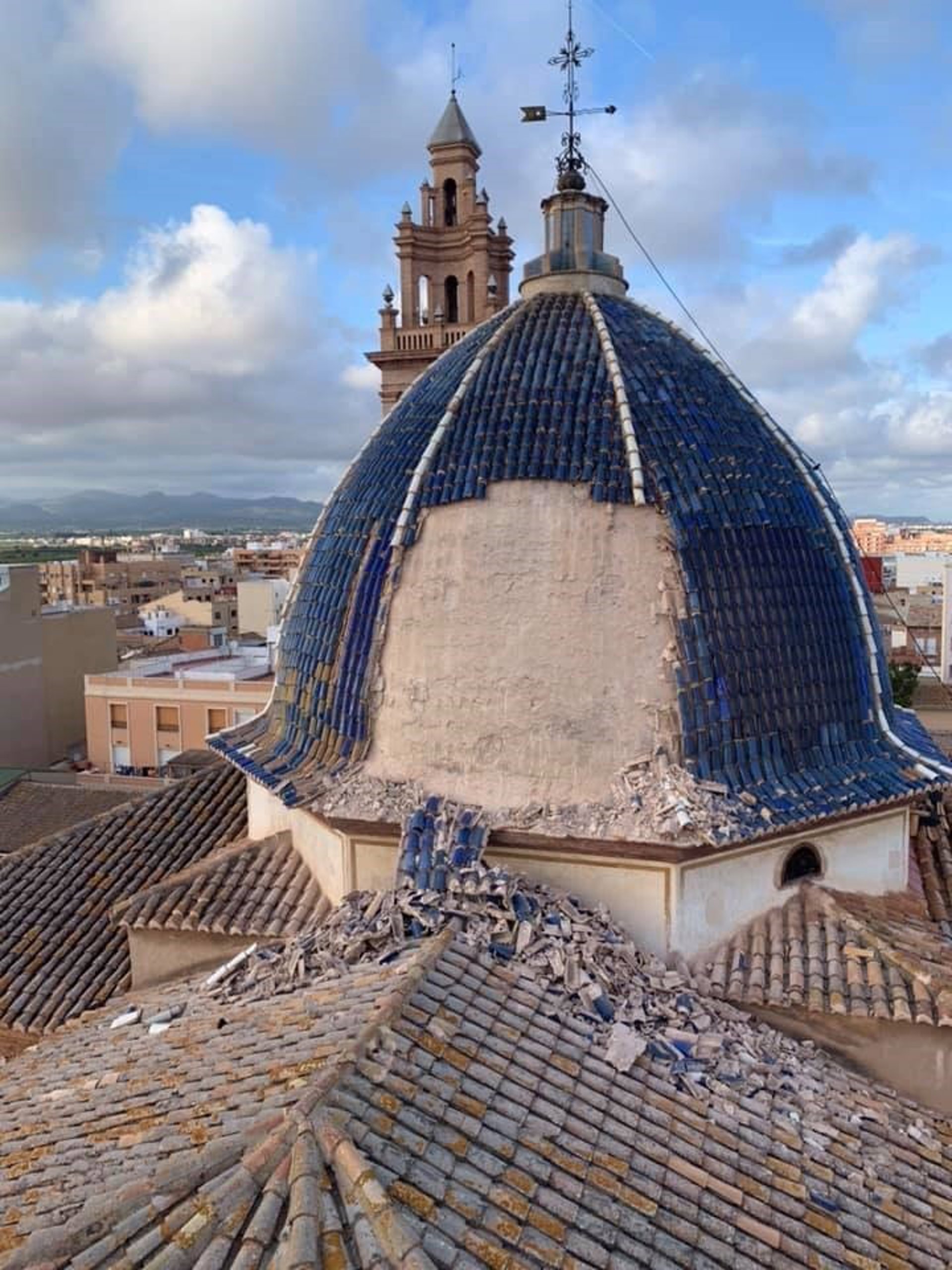 Parte de la cubierta de la cúpula de la iglesia de San Juan Apóstol y Evangelista de Massamagrell, del siglo XVIII se desprendió este viernes y ha obligado a cerrar varias calles.