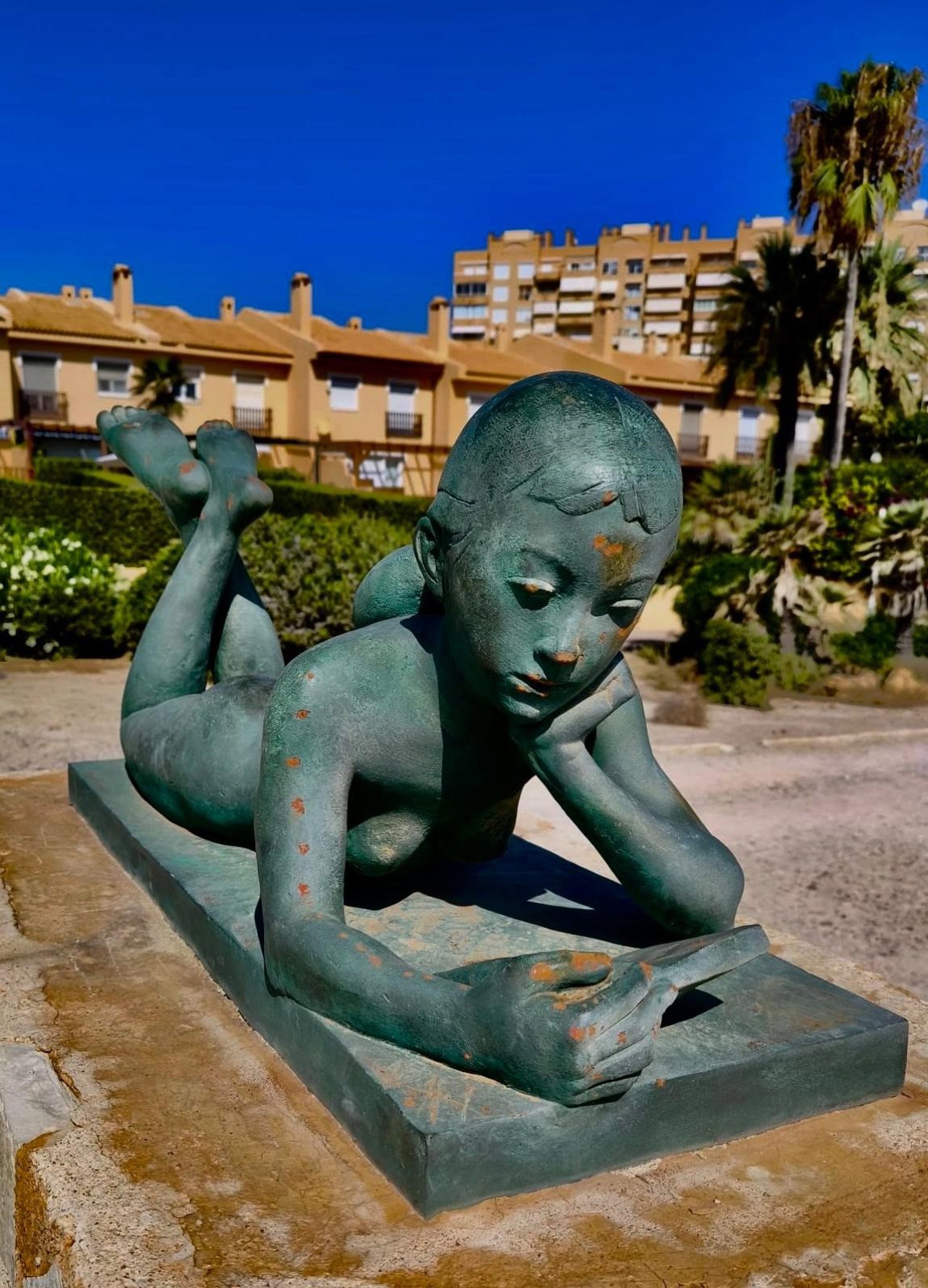 Escultura 'Niña leyendo', del Paseo Voramar de El Campello, dañada a martillazos. - AYUNTAMIENTO EL CAMPELLO