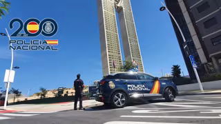 Un agente junto a un coche de Policía Nacional en Benidorm (Alicante), en una imagen de archivo. - POLICÍA NACIONAL