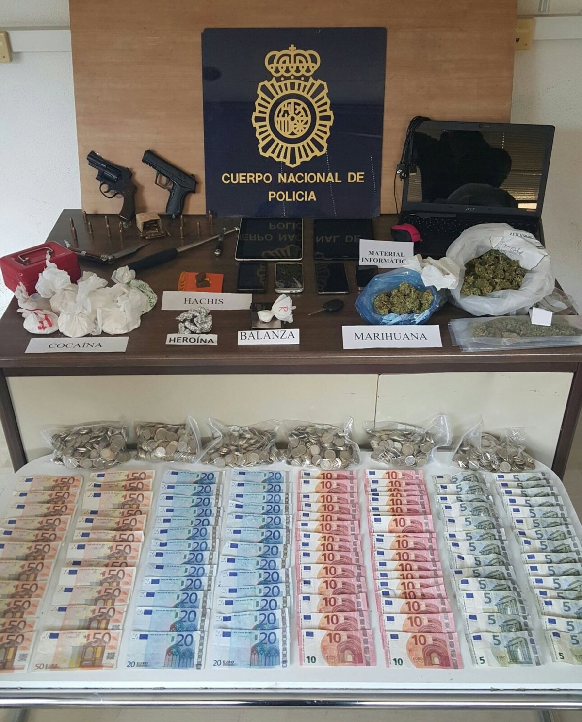 Según ha informado la Comisaría provincial, en la macro operación se ha intervenido medio kilo de cocaína, 330 gramos de marihuana de cogollos, 12 gramos de heroína y cerca de 13.000 euros. La Policía considera que los detenidos formaban una organización criminal dedicada tráfico de sustancias estupefacientes, para su distribución en El Palamó y la zona norte.