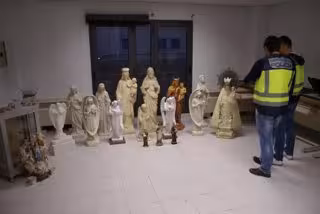 Los detenidos son una mujer de nacionalidad portuguesa de 46 años y un hombre español de 35. La investigación fue iniciada a principios del mes de noviembre, cuando los agentes detectaron dos hurtos de estatuas religiosas, perpetrado uno de ellos en el cementerio de Orihuela, donde los autores sustrajeron de un panteón familiar dos estatuas con forma de ángel y otro, en el camposanto de la pedanía de los Desamparados, donde se apoderaron de una estatua de escayola con la imagen de la patrona de dicha pedanía.