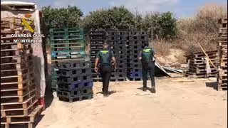 La Guardia Civil ha detenido a dos hombres de 38 y 43 años relacionados con el presunto robo de más de 850 palés de madera y de plástico valorados en cerca de 18.000 euros y que han sido hallados en dos naves industriales de Sant Vicent del Raspeig y Sant Joan d'Alacant.