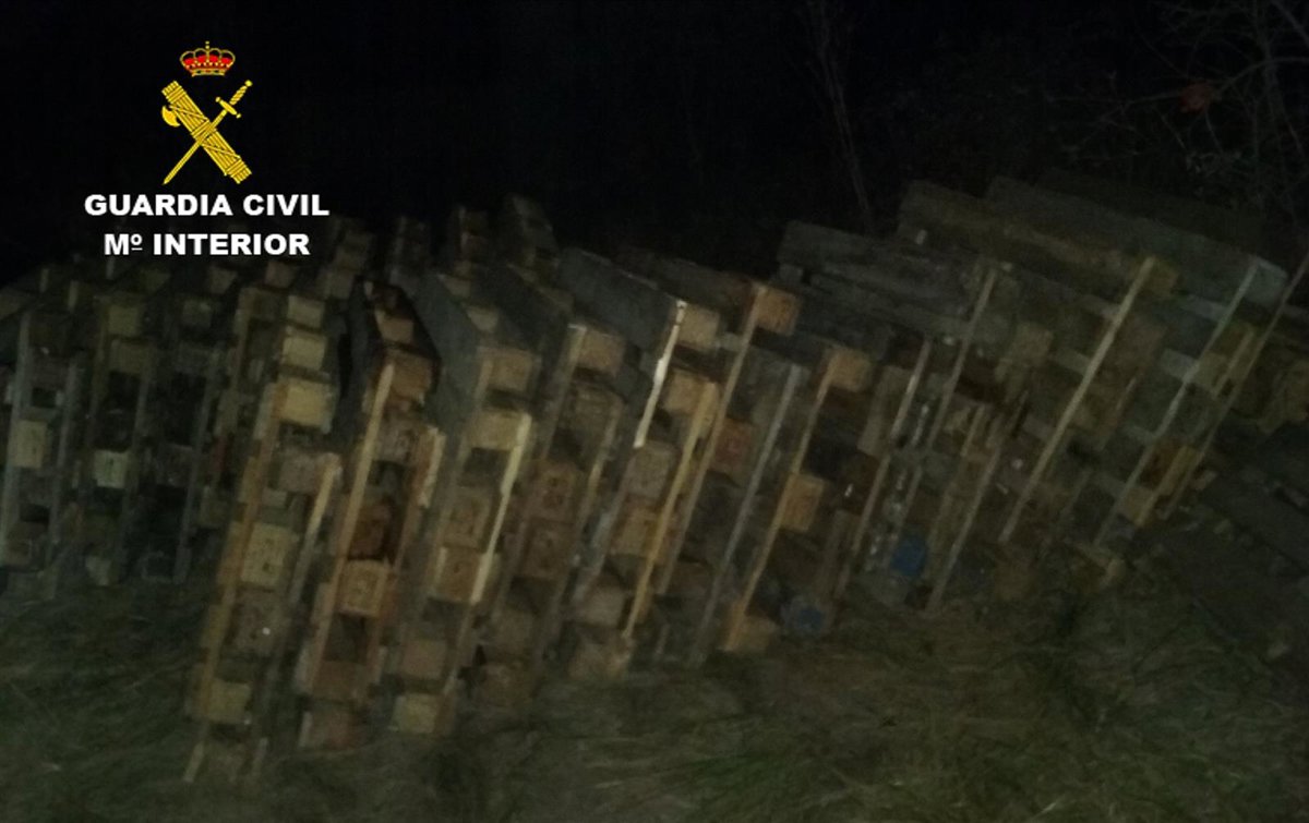 Posteriormente, los agentes identificaron a tres personas, dos hombre y una mujer de entre 23 y 48 años, como presuntos autores del robo, del que la Guardia Civil ha podido recuperar 60 palets.
