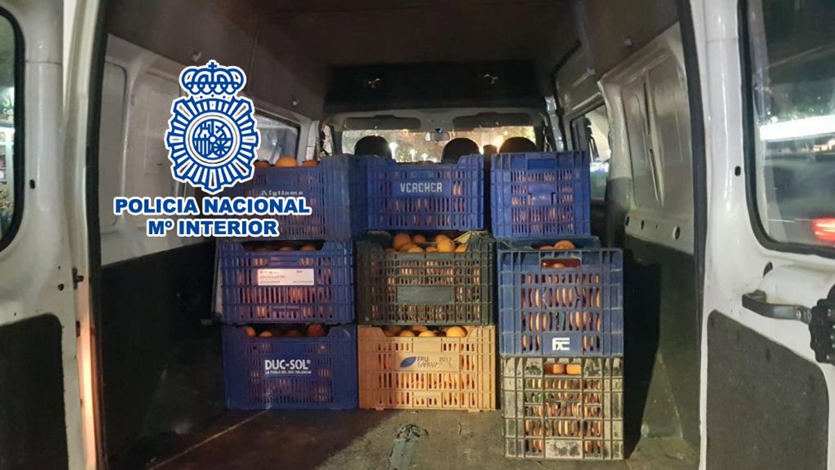 Posteriormente, el hombre se retiró hacia una furgoneta. Cuando los agentes le interceptaron, descubrieron que el vehículo estaba cargado de cajas de naranjas. Tanto el conductor como el joven que portaba las cajas de naranjas no pudieron acreditar el origen de las mismas, ya que no disponían de albarán, ticket o documento de trazabilidad alguna.