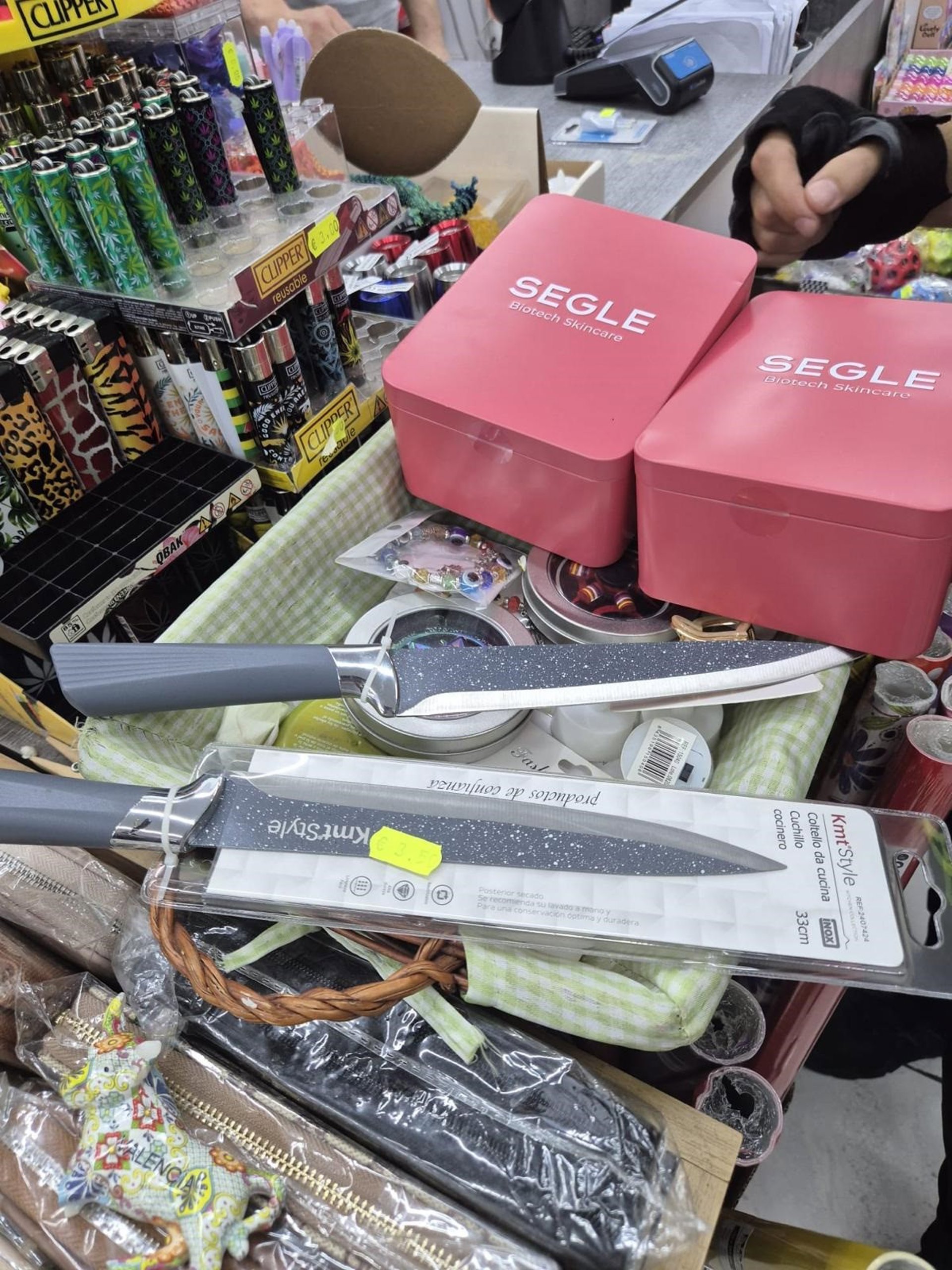 Varias patrullas se movilizaron por la zona y transmitieron la información al resto de unidades en servicio. Apenas unos minutos después, otra dotación fue requerida en un establecimiento cercano, otro comercio en la Avenida al Vedat, donde presuntamente el mismo varón había intentado cometer un nuevo hurto, esta vez de diferentes objetos, entre ellos cuchillos de gran tamaño.