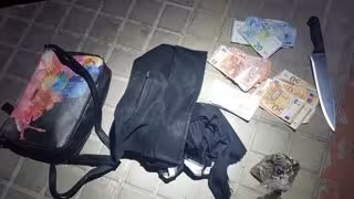 El bolso y el dinero que supuestamente llevaba la mujer y el cuchillo presuntamente usado. - POLICÍA LOCAL ELCHE